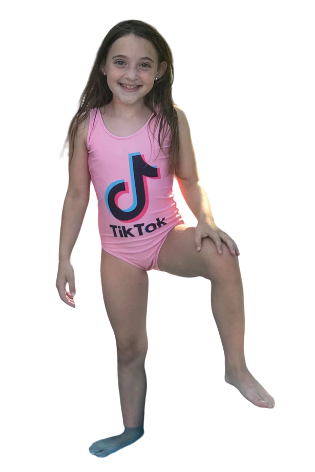 Malla entera para nena con el estampado del momento. Tik Tok! Viene en rosa y amarillo que les va a encantar.
