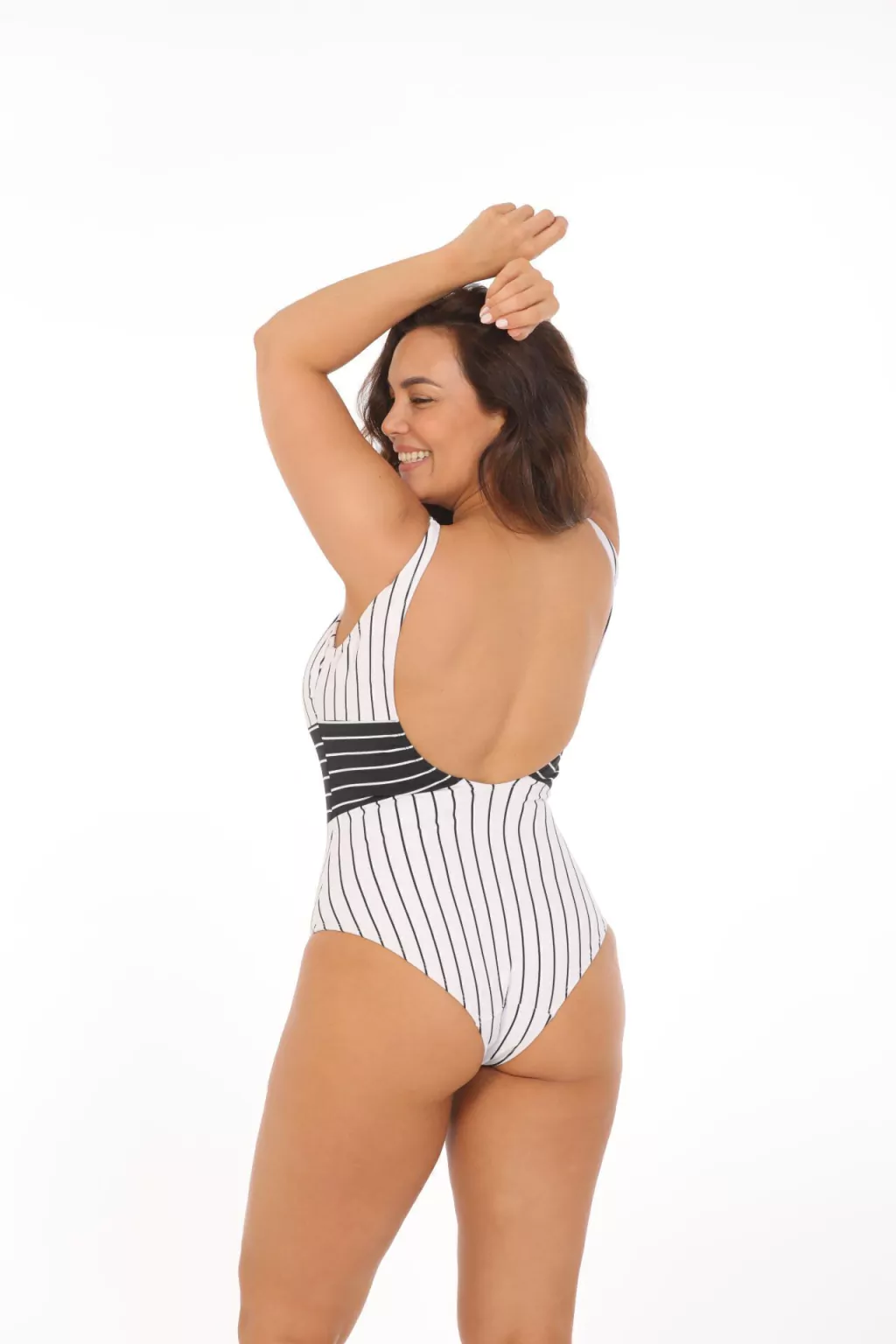 Enteriza Susan con corte redondo y vedetina. está hecha con una tela a rayas para estilizar tu figura. además de tener detalle en el medio para moldear la cintura. Viene en dos tonos y por su forma puede ser utilizado como malla o body veraniego! En su interior. está completamente forrada para brindar mayor comodidad y confianza.